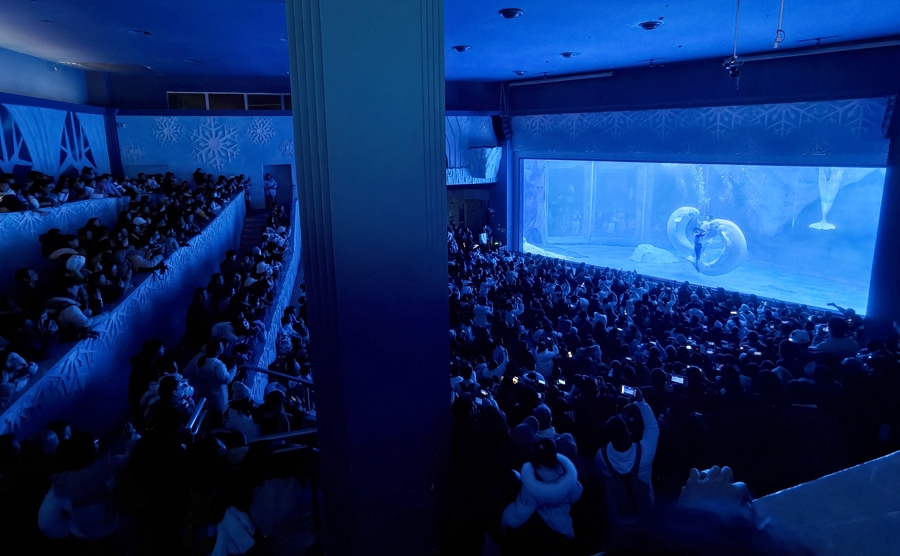园内全天有超百场演艺活动,十大海洋元素剧目火热开场:《虎鲸传奇》《海豚奇缘》《海狮哈哈秀》《白鲸之恋》《倾世·人鱼童话》等经典剧目让游客大饱眼福。为应对节日客流,公园将演出场次增加1倍,为游客打造一场嘉年华。