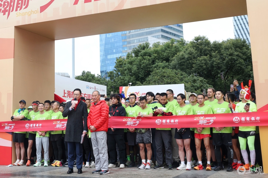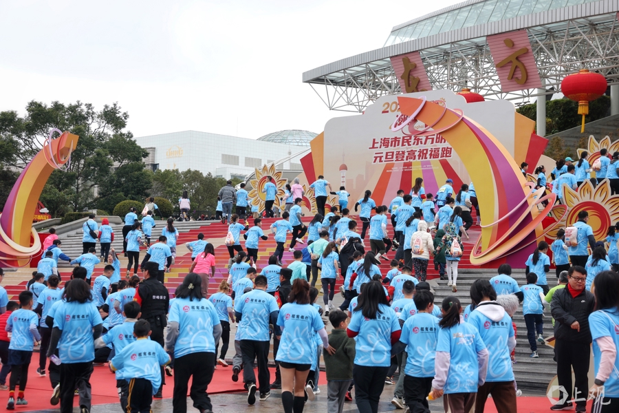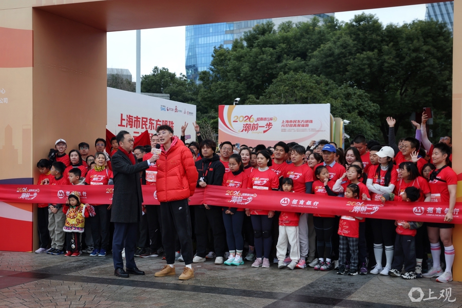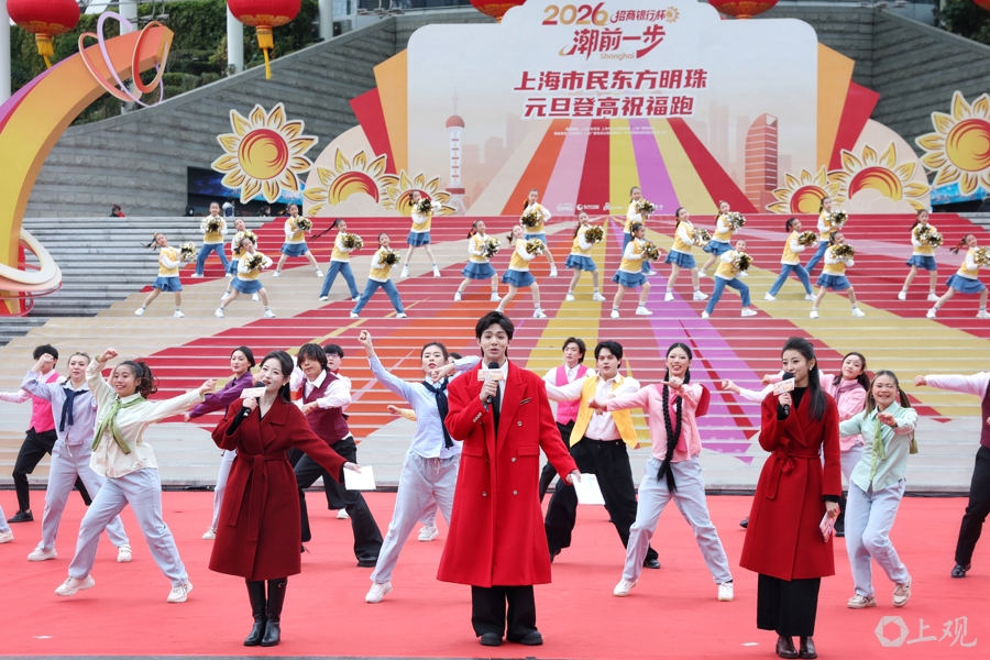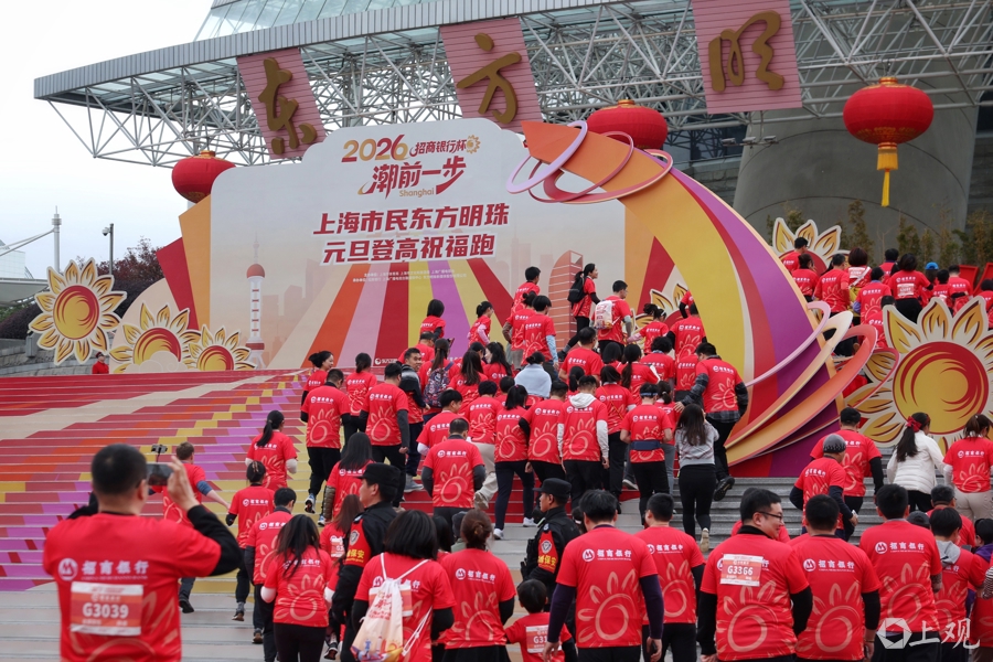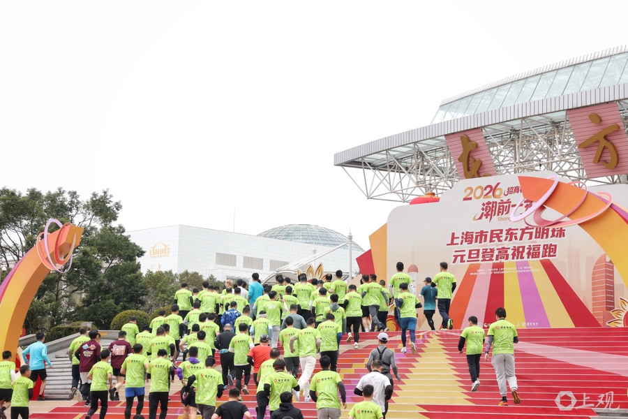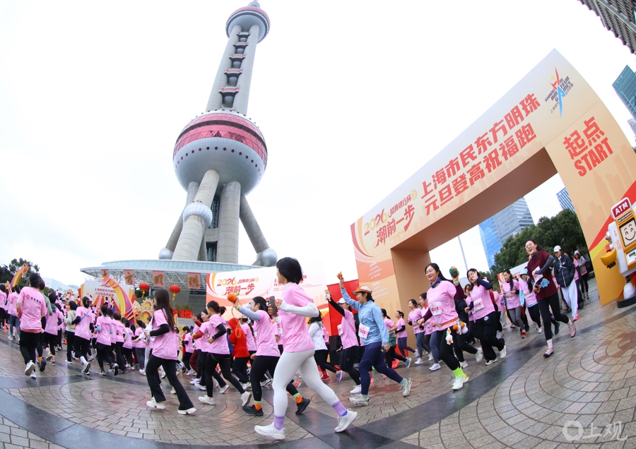 2026年1月1日上午9时,以“‘潮’前一步,向阳而生”为主题的上海东方明珠元旦登高祝福跑鸣枪开跑。