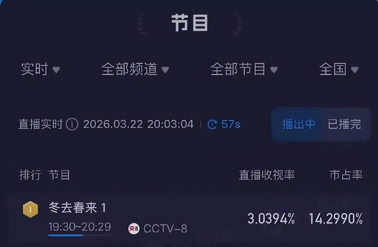 首播4集,在央视8套黄金档播出,网络平台爱奇艺、咪咕视频同步播出。央视开播半小时酷云收视率就破3,稳居全平台第1,打破了2026年央视八套最快破3的记录,在历史开播破3速度里也排第3。而且开局爱奇艺站内也有5个广告,算是打了一个开门红。