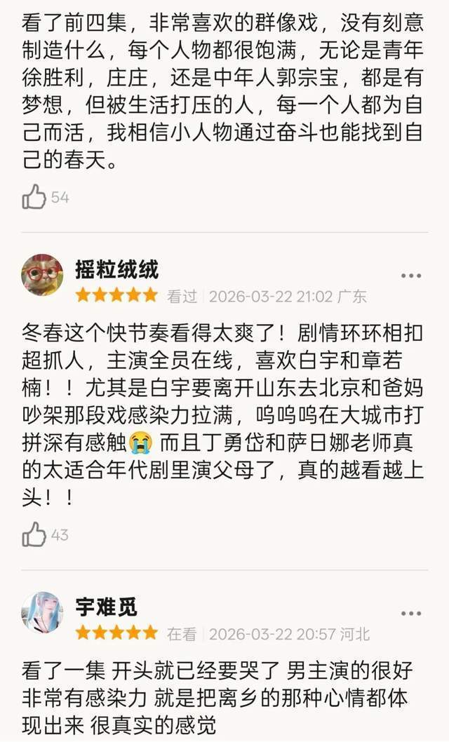 其实本来对北漂题材不抱期待的,但这部剧真的超预期,没有工业糖精和狗血套路,就是安安静静讲普通人闯北京的故事。节奏、演员、群像、年代感都超好,能爆确实是实至名归!