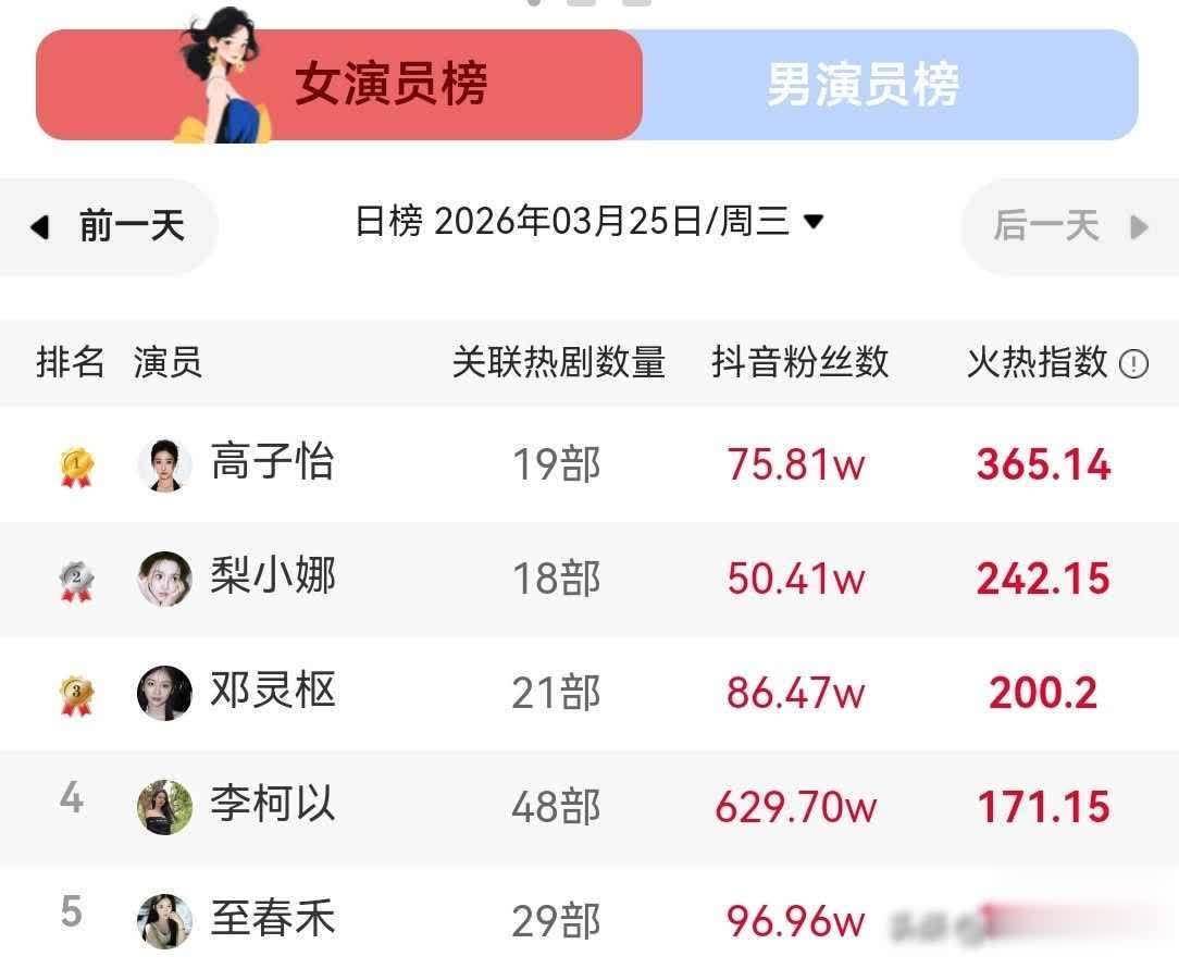 这时候,有个叫高子怡的新人突然冒出来,她在3月热度榜上拿了第一,这不是靠着综艺露脸或者采访炒话题得来的,而是靠着她演的19部男频短剧——这些剧全是讲“霸总+逆袭”“重生复仇”这类快节奏故事,这些剧集中在2025年下半年上线,时间点安排得特别准。